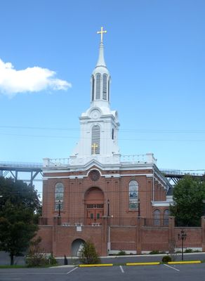 La antigua iglesia católica se encuentra en las calles 3rd y Lincoln, con una distinguida fachada de ladrillo rojo y altas agujas.
