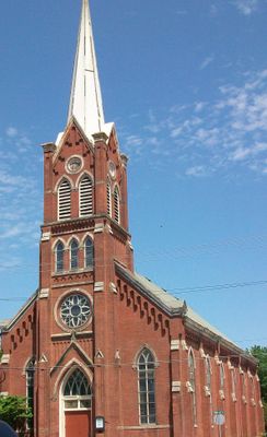 Inmigrantes alemanes fundaron la iglesia en 1853, iniciando la construcción del edificio actual de ladrillo en 1875 con materiales locales.