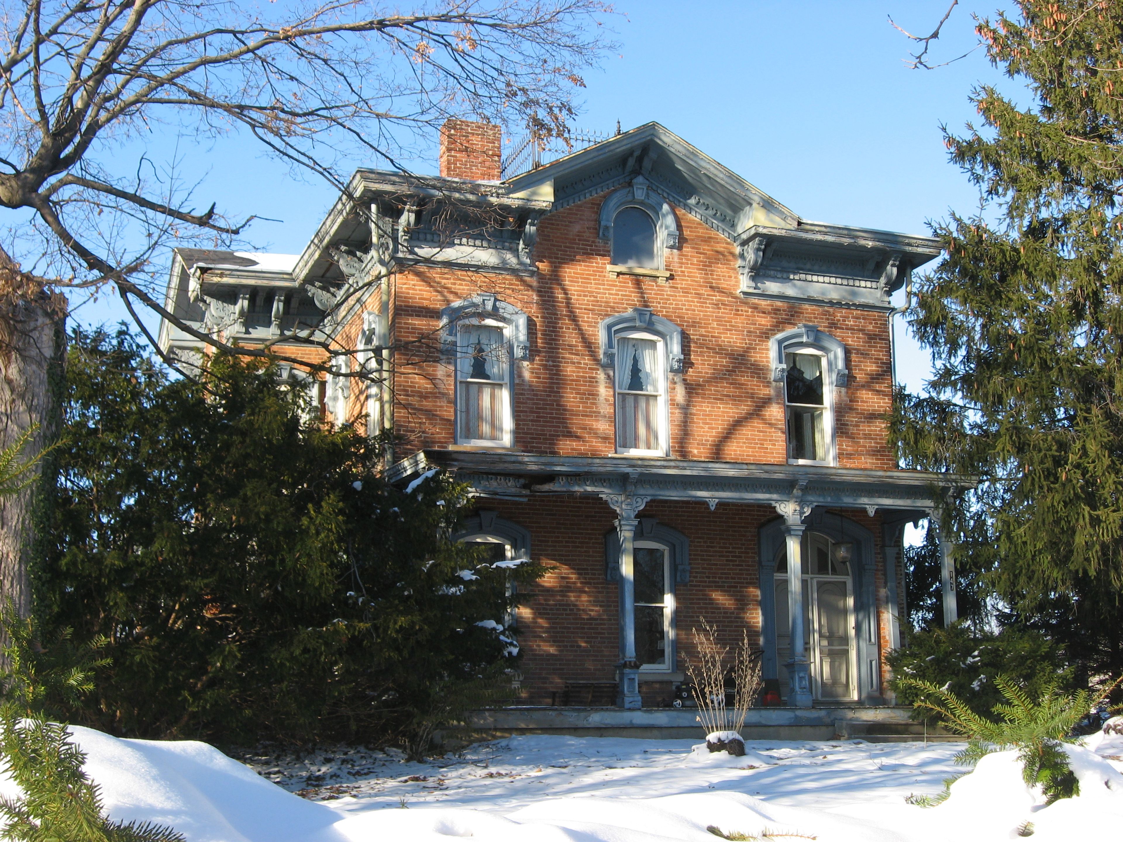 Situada en 147 East High Street en London, Ohio, la residencia de catorce habitaciones ocupa menos de una hectárea cerca del centro.