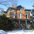 La Casa Swetland presenta una construcción de ladrillo con múltiples ventanales salientes, techo a cuatro aguas y molduras decorativas elaboradas.