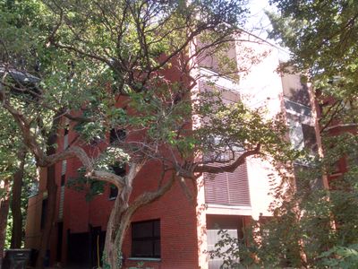 El edificio se encuentra en una zona residencial tranquila y es claramente visible desde la calle mientras caminas por South University Avenue. Las persianas externas de las ventanas están entre los primeros sistemas de ahorro de energía de su tipo, mostrando lo temprano que los diseñadores pensaron en la comodidad y eficiencia.