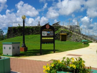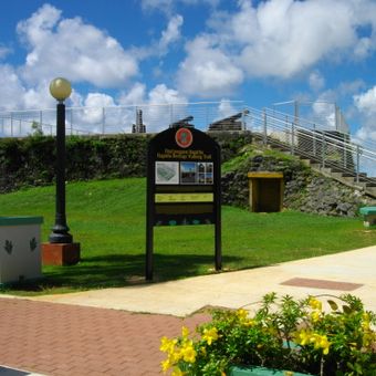 El Fuerte Santa Águeda presenta un parapeto de 3 metros construido con piedra de coral y mortero de cal en una ladera de Hagåtña.