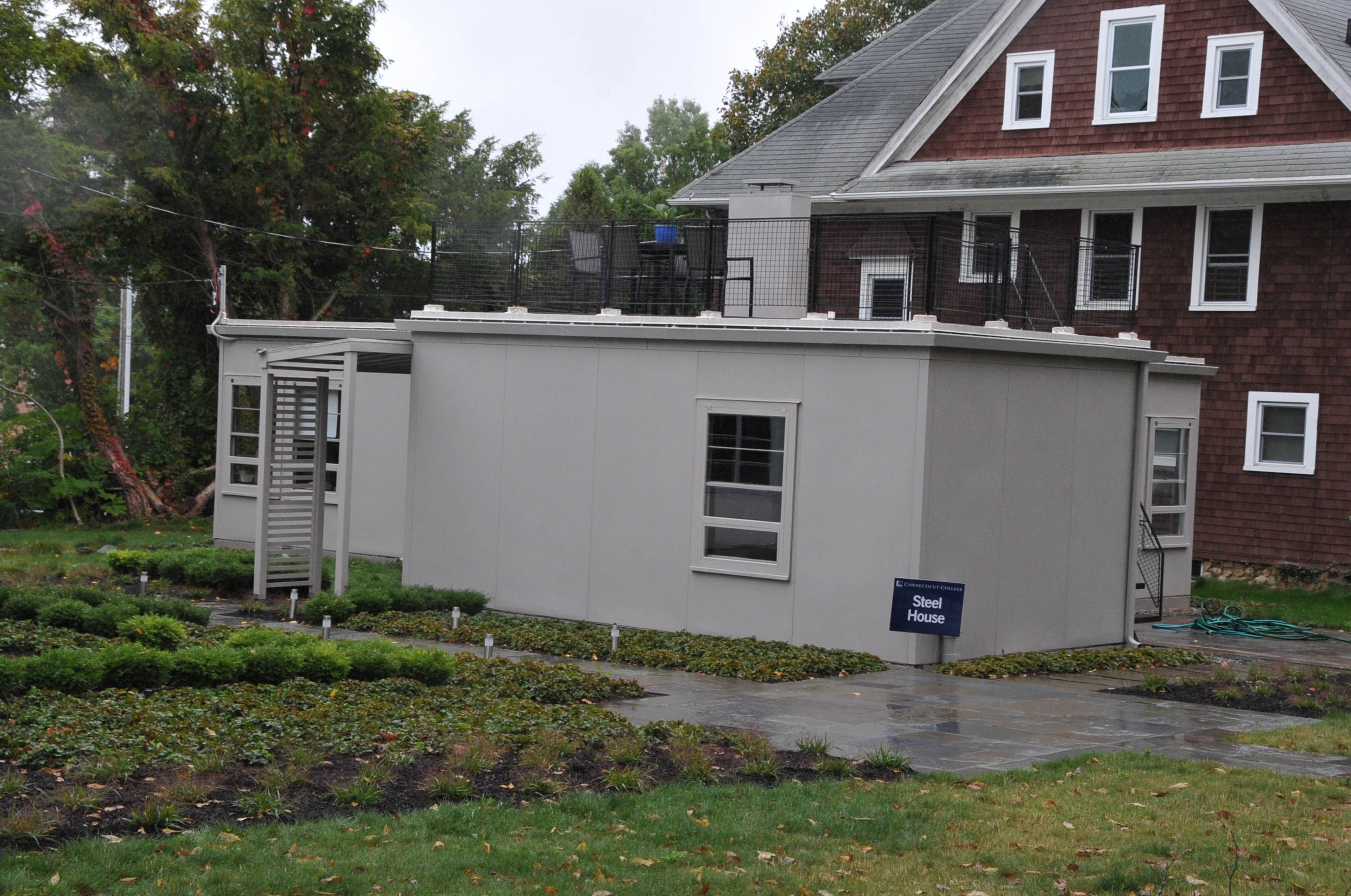 La vivienda unifamiliar en 130 Mohegan Avenue presenta paneles de acero de 1,2 por 2,7 metros que soportan todo el peso estructural del edificio.
