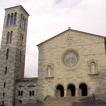 La iglesia presenta un estilo arquitectónico neorrománico con una torre de 47 metros y se extiende 84 metros de largo por 35 metros de ancho.