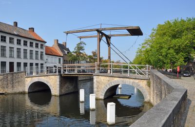 Duinenbrug, puente basculante sobre el canal Langerei en el este del centro histórico de Brujas, Bélgica