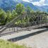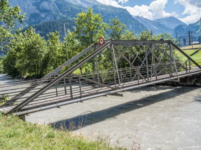 Pedestrian bridge over the Kander river, truss iron bridge in Kandersteg in the canton of Bern, Switzerland