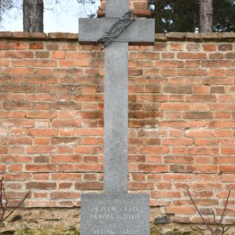 Wayside cross in front of the cemetery, kříž z roku 1987 u hřbitovní zdi v Brně-Žebětíně