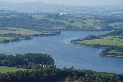 El embalse se extiende por 8.7 kilómetros cuadrados en la cordillera Nízký Jeseník, con una presa de terraplén sobre el río Moravice.