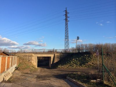 Železniční most v Hovorčovicích, most přes prodloužení ulice u rybníka (a Hovorčovický potok)