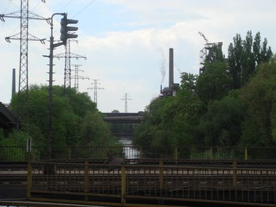 Lávka přes Olši k vysokým pecím v Třineckých železárnách