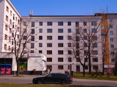 Pamětní deska Karla Poláčka na domě Bělocerkevská 1024/40 ve Vršovicích