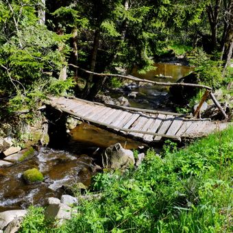 Lávka přes Bystřici u dolu Šlik, lávka na hranici Pstruží a Rybné