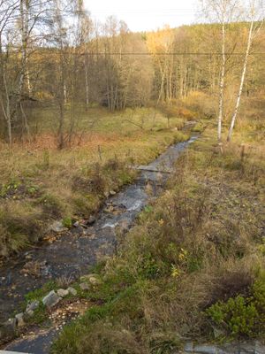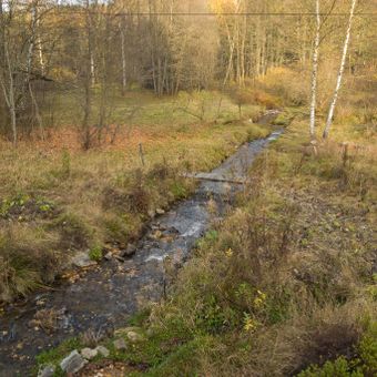 Lávka přes Šukačku východně od mostu silnice I/27, jednoduchá dřevěná lávka bez zábradlí