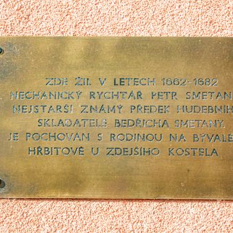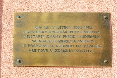 Pamětní deska, pamětní deska připomínající nejstarší předky skladatele Bedřicha Smetany