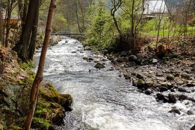 Most přes Bystřici v Merklíně u čp. 74, most mezi domy Merklín čp. 74 a Oldřiš čp. 22