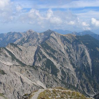 El Friederspitz se eleva hasta los 2049 metros sobre el nivel del mar, con caras rocosas pronunciadas y laderas herbosas en los Alpes bávaros.