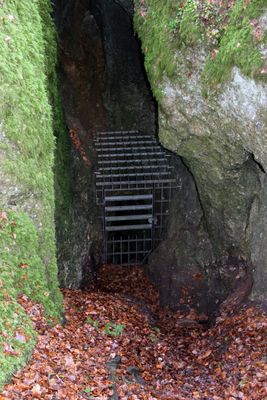 Bismarckgrotte bei Rinnenbrunn, Cueva kárstica natural en Hirschbach, Alemania.