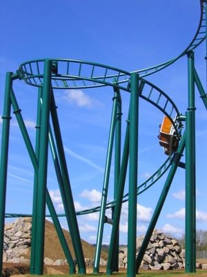 La montaña rusa de acero se extiende por 532 metros con una altura de 17,5 metros a través del Parque Salvaje y de Ocio Klotten.