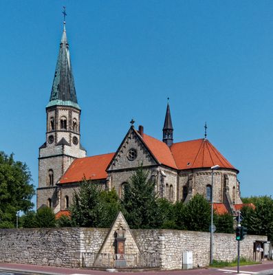 La estructura se eleva notablemente en las llanuras de Hildesheim Börde a 80 metros sobre el nivel del mar, ganándose la denominación local de Catedral de Harsum.