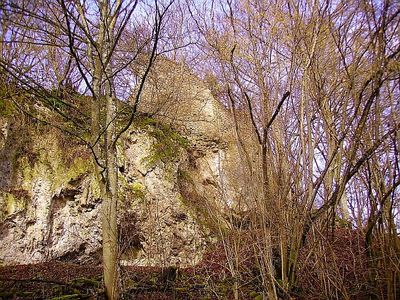 Los restos de piedra de Haus Dreimühlen se encuentran a 380 metros sobre el nivel del mar en la región caliza entre Hohen Venn y Vulkaneifel.