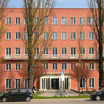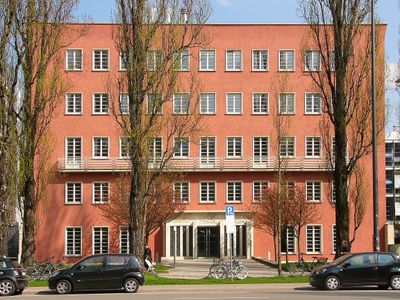 Verwaltungsgebäude, kubischer Block; ein Hauptwerk der Neuen Sachlichkeit in München, 1928–29 von Jakob Pfaller