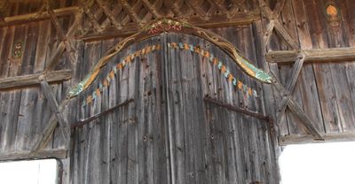 Bundwerk mit Medaillon-Malerei, bez. 1845; an den Traufseiten des Wirtschaftsteils