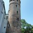 Blasiusturm, Turm der Stadtbefestigung, fünfgeschossiger Rundturm mit unverputztem Ziegelmauerwerk, Kegeldach und Rundbogenfries, mit der katholischen Kapelle St. Blasius durch einen kurzen, zweigeschossigen Übergang verbunden, wohl um 1420