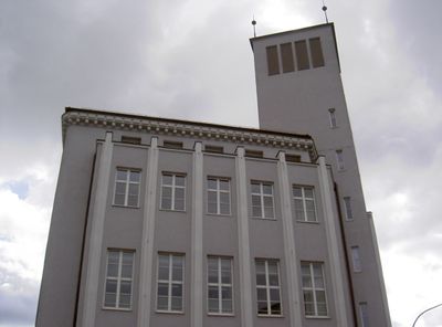 Altbau der Firma Josef Witt, 1925–1929 von den Nürnberger Architekten Hans Lehr (Architekt) und Karl Leubert, Gebäudekomplex mit zwei Türmen in Expressionismus (Architektur), figurale Bauplastik. Nicht nachqualifiziert