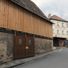Scheune, zweigeschossiger, zum Teil verbretterter Satteldachbau mit massivem Erdgeschoss aus Bruchstein und Fachwerkobergeschoss, 1572, Umbau 19. Jahrhundert