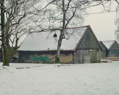 Fischerhütte 1, Dießen am Ammersee; Verbretterter Ständerbau mit Steilsatteldach, bezeichnet „1788“