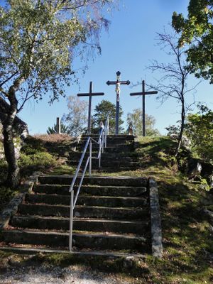 Kreuzweg, mit Ölberggruppe, Stationen und hl. Grab, errichtet 1852, erneuert 1887; ostwärts am "Moosbacher Pfahl"