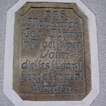 Inschrifttafel vom ehemaligen Kapuzinerkloster, building in Vohenstrauß, Upper Palatinate, Germany