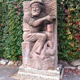 Relief des „„Gänsekippelschorsch“, Cultural heritage monument in Flörsheim am Main, Hesse, Germany
