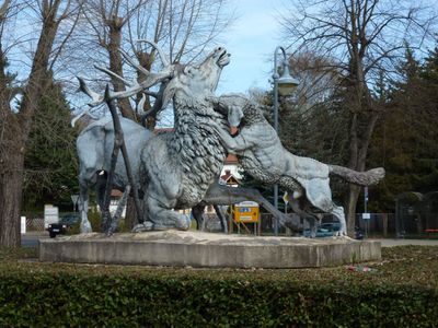 Hirschplastik Gottschalkstraße, Hirschplastik; ursprünglich im Park des Gutes auf einem Podest stehend, zur Gutsanlage gehörig