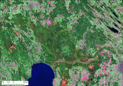 La Reserva Natural Alam-Pedja abarca cinco grandes pantanos divididos por ríos y llanuras aluviales, con extensos bosques que cubren 342 kilómetros cuadrados.