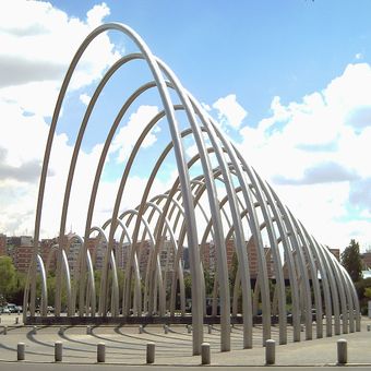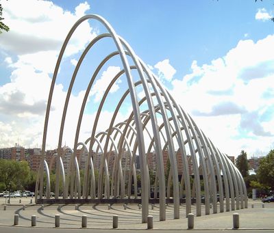 Puerta de la Ilustración, Escultura de arcos de acero en El Pilar, Madrid, España.