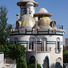 La estructura incluye múltiples cúpulas de diferentes tamaños cubiertas con azulejos cerámicos y una cruz decorativa que da nombre al edificio.