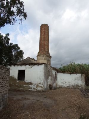 Chimenea y motor en la partida del Racó de l'Olla, conjunto de bomba de agua y chimenea en el municipio de Valencia