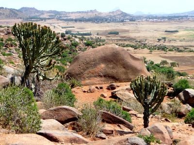 La Leona de Gobedra presenta un grabado de tres metros de largo que representa una leona agachada tallada en una gran roca de fonolita.