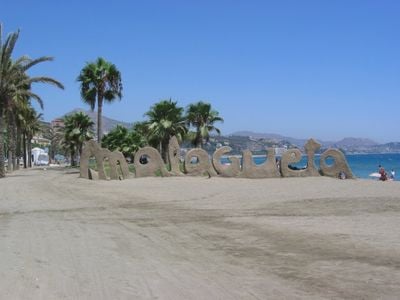 Playa de la Malagueta, Playa mediterránea en distrito Centro, Málaga, España.