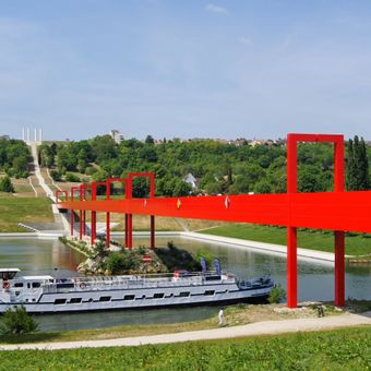 Passerelle de l'Axe Majeur, Pedestrian bridge (footbridge) in Cergy, Val-d'Oise (95), Île-de-France, France; Cergy, Val-d'Oise (95), Île-de-France, France