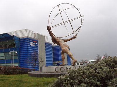 Situado junto a la pista norte del Aeropuerto Heathrow, el Centro Compass incluye restaurante, cafetería e instalaciones para formación.