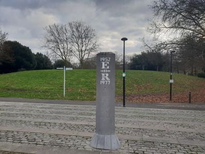 Los jardines incluyen obeliscos conmemorativos que marcan los jubileos de plata y oro de la Reina Isabel II.