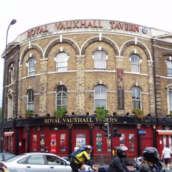 El Royal Vauxhall Tavern es un pub en Kennington Lane con una fachada curva y elementos de diseño viktoriano. Su interior alberga varios espacios para actuaciones donde se presentan shows en vivo y actos de cabaret regularmente.