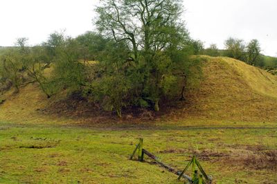 Los terrenos del castillo presentan presas de tierra y un sistema de foso que demuestra técnicas medievales de gestión del agua y defensa.