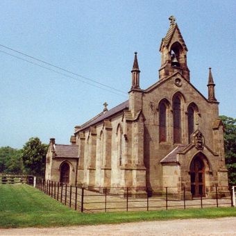 Edward Lapidge diseñó esta iglesia catalogada de Grado II en 1837, financiada por la familia Delves Broughton que residía en la cercana Doddington Hall.