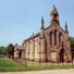 La estructura de la iglesia presenta muros de arenisca amarilla labrada con techo de pizarra, con un plan de celda única y contrafuertes angulares con pináculos octagonales.