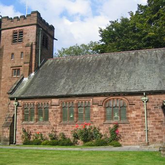 La construcción de este edificio catalogado Grado II comenzó en 1902, con el arquitecto John Douglas diseñando y financiando el presbiterio y la puerta del cementerio.