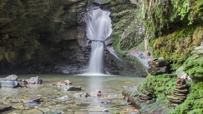 El sendero boscoso hasta la cascada se extiende por un kilómetro, con precios de entrada de 9 libras para adultos y 5 libras para niños.