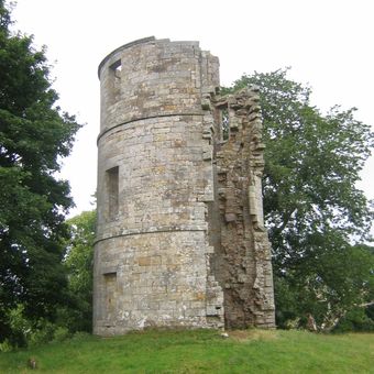 La minería de carbón en los años 1930 causó daños graves en el sitio y destruyó el edificio principal, dejando solo la torre angular en pie. Hoy, esta ruina solitaria es un recordatorio de cómo la actividad industrial transformó el paisaje.